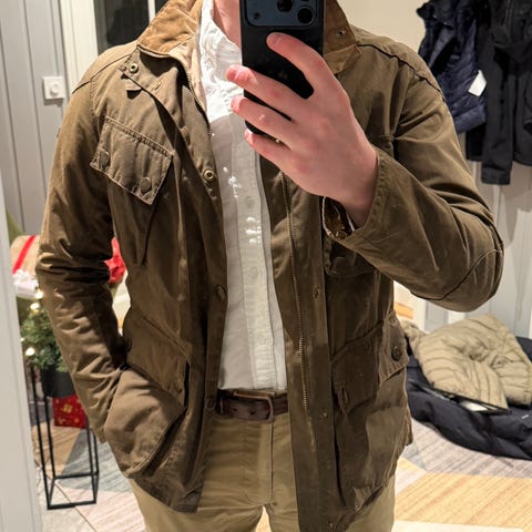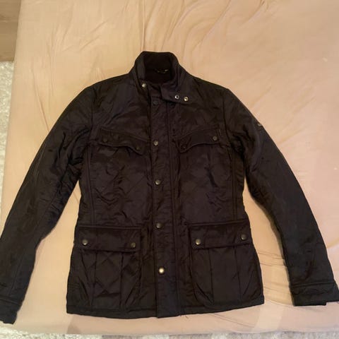 Barbour International jakke i størrelse M, svart farge. Den har ingen skader,mangler eller feil.