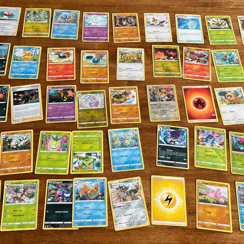 Sønnen min selger pokemonkortene sine, de er i fin stand og har ligget i en eske.