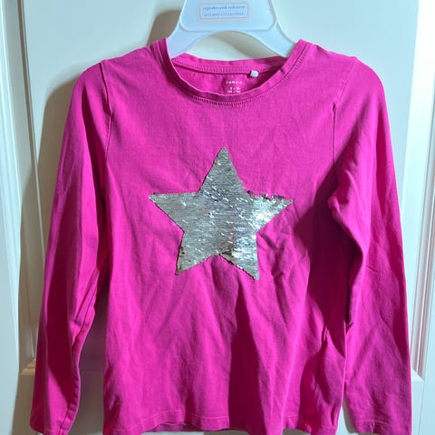 Ny Name it Merinoull genser i størrelse 134 for jente, i rosa farge. Laget av merinoull, som gir varme og komfort. Passer for barn i denne aldersgruppen og kan brukes som et isolerende plagg i kaldt vær.
