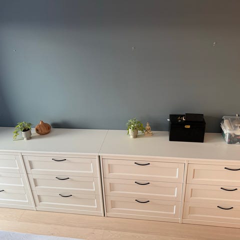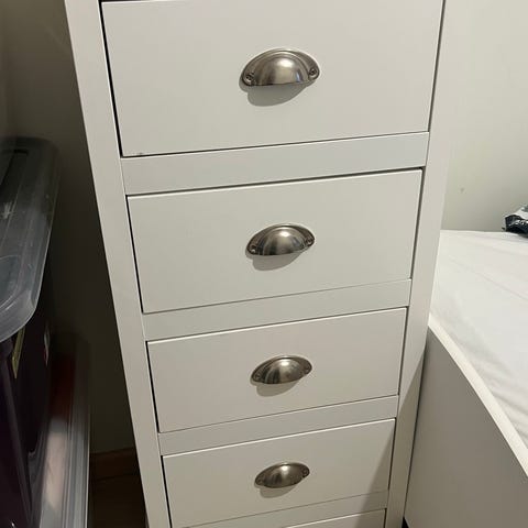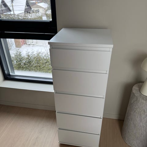 Selges brunsort kommode fra IKEA med 6 skuffer . Har 2 stk selges 600 kr stk eller 1000 kr om du er så snill og tar begge . Noe små bruks merker . Skuffene børr strammes litt . Selges da jeg har kjøpt nytt da jeg trengte noe større oppbevaring . Ca 2 år gammel . Må hentes