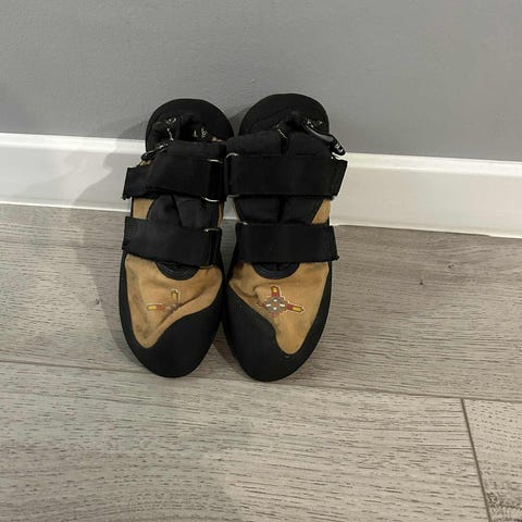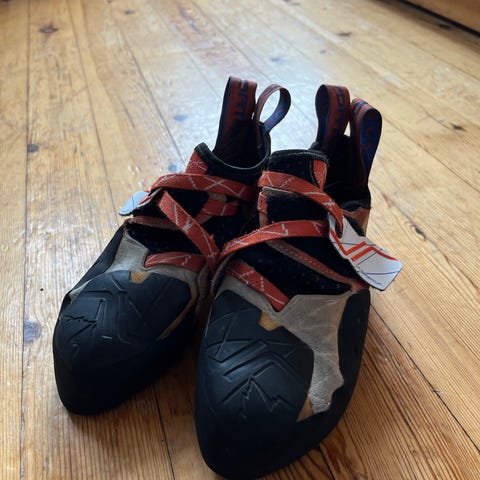 Brukte klatresko selges. Størrelse er borte, men antar str 36-37. Ca 23 cm innvendig fra storetå til hel. S bilder for tilstand.