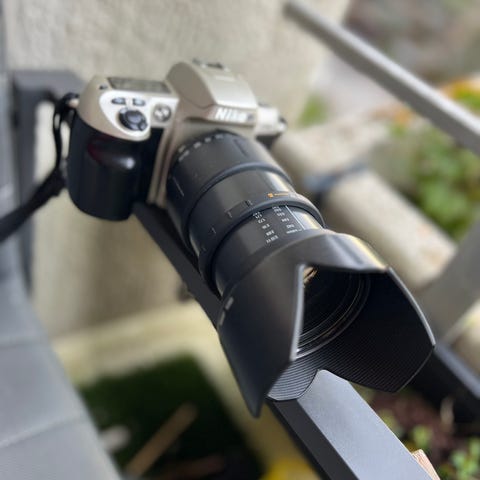 Nikon AF-S DX NIKKOR 35mm f/1.8G objektiv med fast brennvidde. Objektivet er designet for Nikon DX-format kameraer og har en blenderåpning på f/1.8, noe som gir gode muligheter for fotografering i svakt lys og med liten dybdeskarphet.