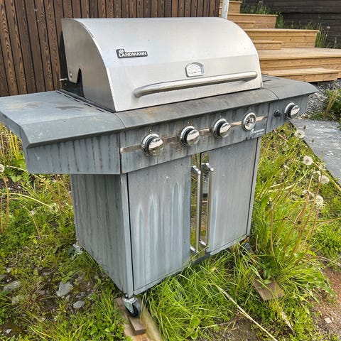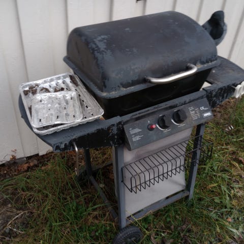 En austin & barbeque gassgrill med 4 brennere pluss sidebrenner gis bort.