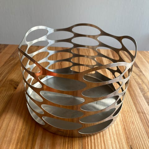 Alessi MOYA 18/10 rustfritt stål kjøkkenutstyr laget i rustfritt stål med perforert design. Produktet har en rund form og speilpolert finish. Egnet for bruk i kjøkkenet til oppbevaring eller servering.