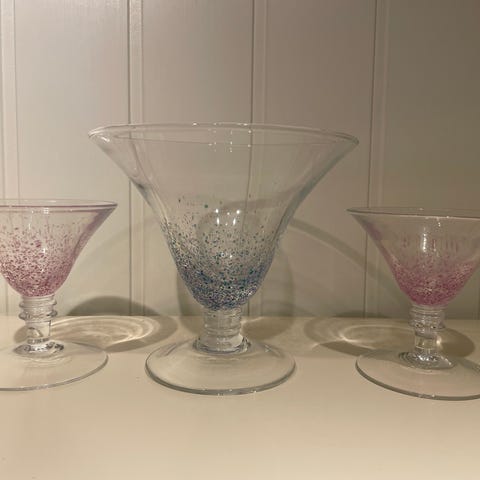 Dobbeltsidede glass fra Hadeland. Gis bort samlet.