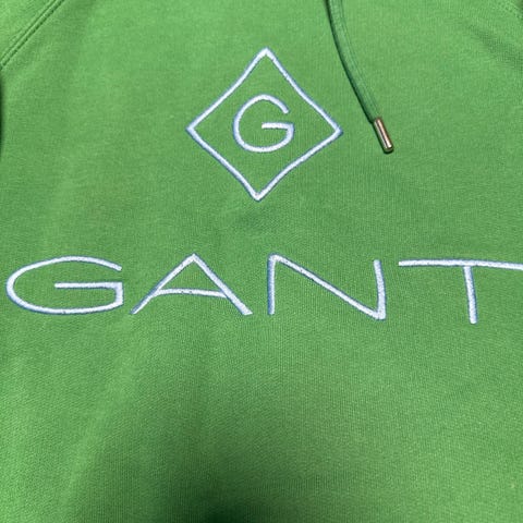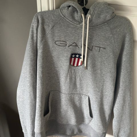 GANT Grå hettegenser i bomull, herrestørrelse S. Genseren har hette og frontlomme, laget av bomullsmateriale.
