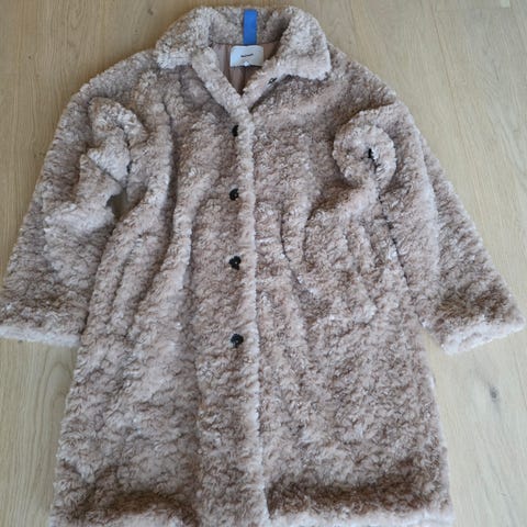 Kåpe i mørk blå med små glittertråder. Fin fasong med knapper foran og stor krage.