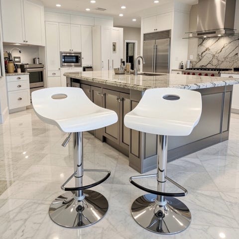 4 stk Barstoler i tre, fra Italia. Stolenes design har en buet seteform og en enkel, funksjonell konstruksjon. Passer til bruk i Bar, spisestue eller kjøkken. Den kan også brukes på en høydejusterbar måte.