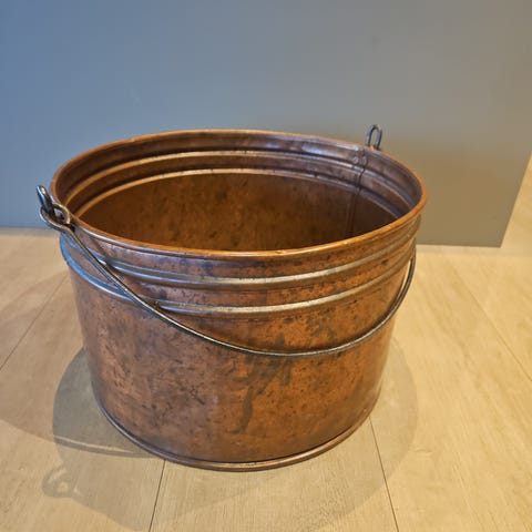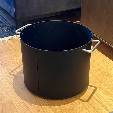 Enkel liten Vedbøtte/kurv til salgs. Laget i metall