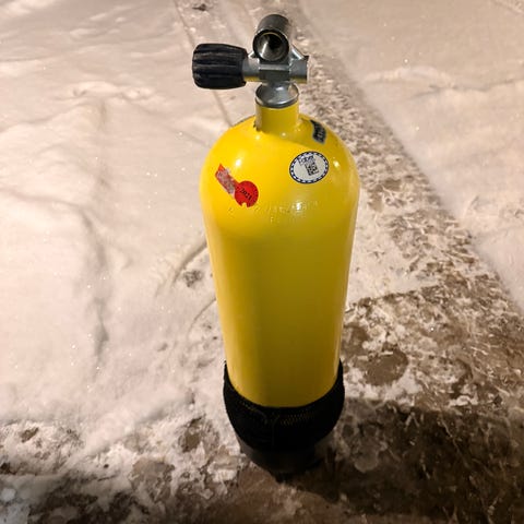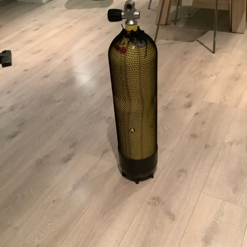 3 stk 50 ltr pressluftflasker koblet i serie med stort høytrykksmanometer. Flasker er trykktestet.