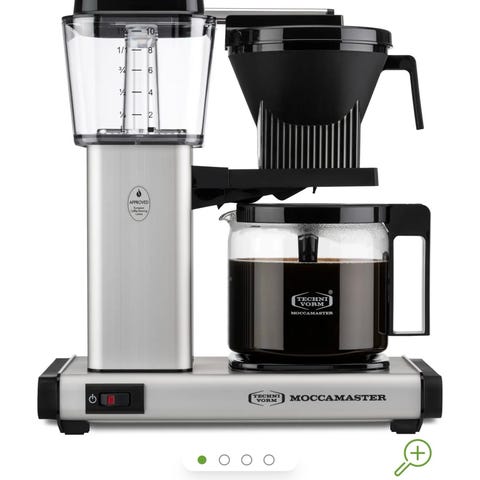 Moccamaster kaffetrakter med glasskanne. Svart farge og designet for å lage filterkaffe.