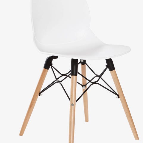 • Materiale: formstøpt polypropylen (plast), trebena i bøk og metallramme – solid og robust konstruksjon.