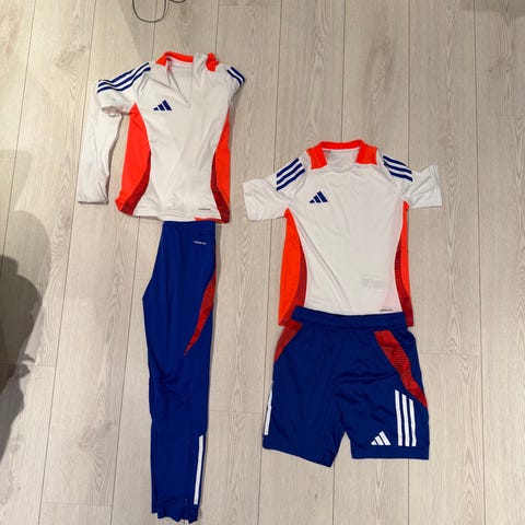 Adidas fotballgenser for barn i størrelse 140. Genseren er blå og laget med ClimaCool-teknologi for god ventilasjon under aktivitet.