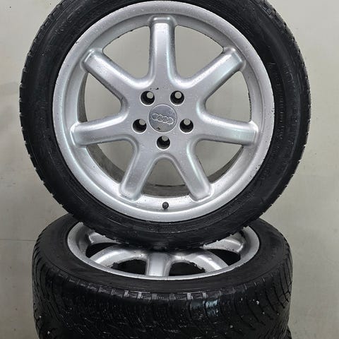 Originale Audi E-Tron felger med sommerdekk selges da bilen er solgt. Er brukt på VW Caddy men kan brukes på mange andre VW, Audi, Skoda modeller og andre biler med 5x112 boltsirkel. Noen få steinsprut/hakk i felger men ser veldig bra ut med gode sommerdekk. Senterkopper følger ikke med.