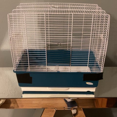 Bur til kanin, hamster, marsvin, reptiler, slanger og andre dyr. Hvit ramme og åpning på toppen. Laget av plexiglass og tre, egnet for oppbevaring av dyr. Rektangulært design med gjennomsiktig front og sider for god sikt.