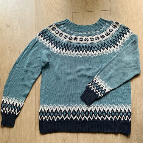 Kjempefin hjemmestrikket genser i modellen dolomitt🩷 den er i str M og strikket i garnet faerytale, aldri blitt brukt