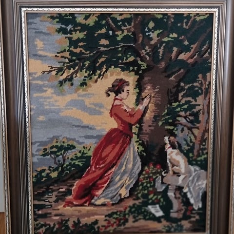 Retro brodert stramei i vakker ramme