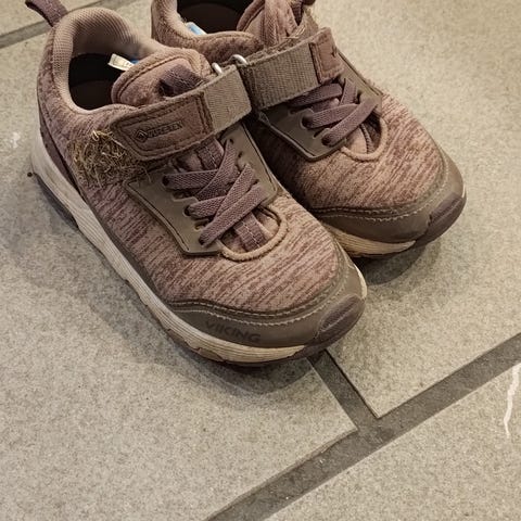 Overgangssko til barn i størrelse 28 selges. Praktisk borrelåslukking som gjør dem enkle å ta av og på. Godt brukt med synlig slitasje, men fortsatt funksjonelle og fine som reservesko eller til utelek.