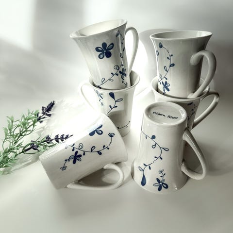 Har 6 stk ubrukte, med lappene på, krusfra Lothepus Knit serien til Modern House som bare står hos meg og støver som gjerne vil ha ett nytt hjem som har bruk for dem.