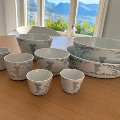 Selger et nydelig og tidløst servise fra Wik & Walsøe, i den populære Alv-serien i grått. Serviset har et eventyrlig og elegant uttrykk med grener, fugler og alv-motiv, og passer like godt til hverdags som til selskap.