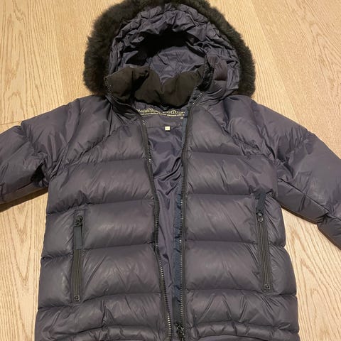 Fleischer Couture Pollux dunjakke for jenter i størrelse 13-14, litt liten i størrelse. Jakken er marineblå og laget av 80 % gåsedun og 20 % fjær, så denne varmer godt på kalde dager ❄️