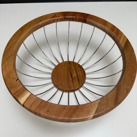 Selger en flott og dekorativ osteklokke/punsjbolle/salatbolle, med solid trebase og rundt trelokk med håndtak. Kan brukes på flere måter.