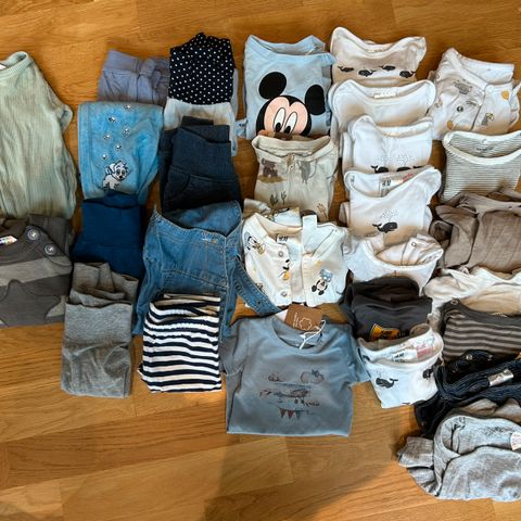 Liten klespakke fra KappAhl. 1 grønt sett, en jakke og to pysjer. Brukt av et barn.