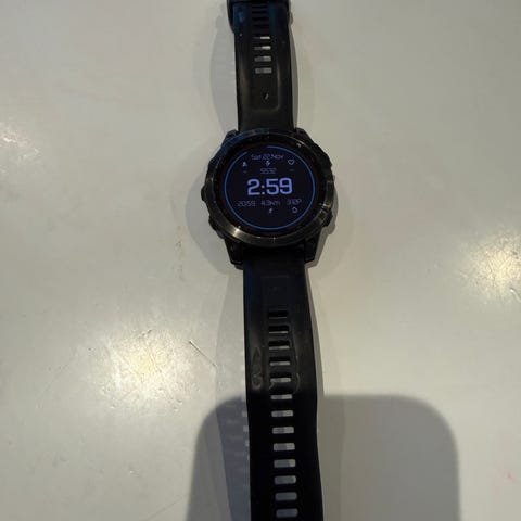 Garmin Fenix 7 Sapphire Solar GPS-klokke med solcellelading, svart farge og robust design. Klokken er utstyrt med avanserte trenings- og helsefunksjoner, egnet for utendørsaktiviteter og daglig bruk. 5000nok for two