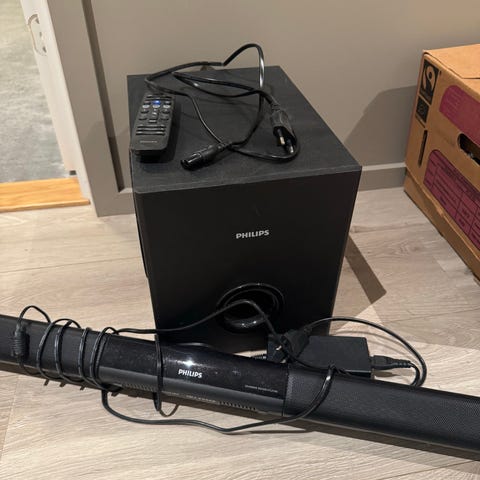 Denon lydplanke med subwoofer.