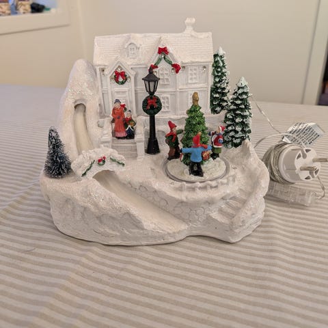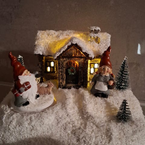 Pent brukt, trenger 2 x aa batterier så blir det lys i husene. Ny pris 439kr. Kan evt pakkes om til å gå i liten pakke, eller hentes på Hommersåk