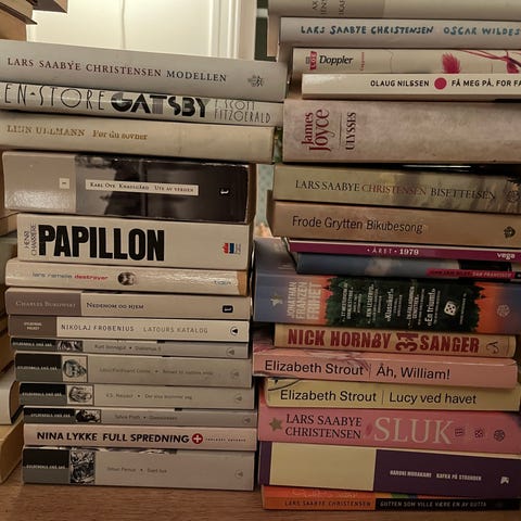 Bl.a. Stieg Larssons trilologi, Anne Holt, Tom Sawyer & Huckleberry Finn. Og fagbøker.