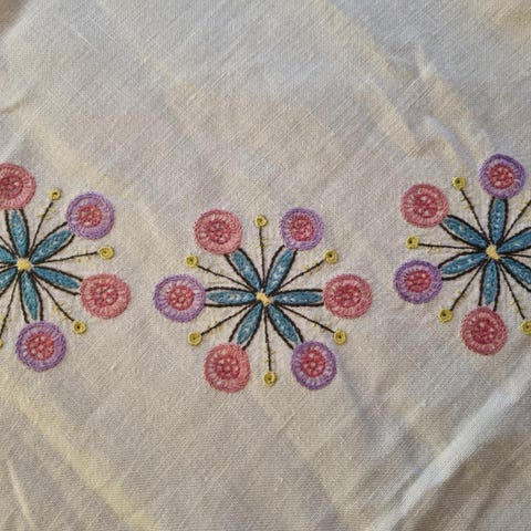 Fin duk i god stand, vasket, lett stivet og strøket.