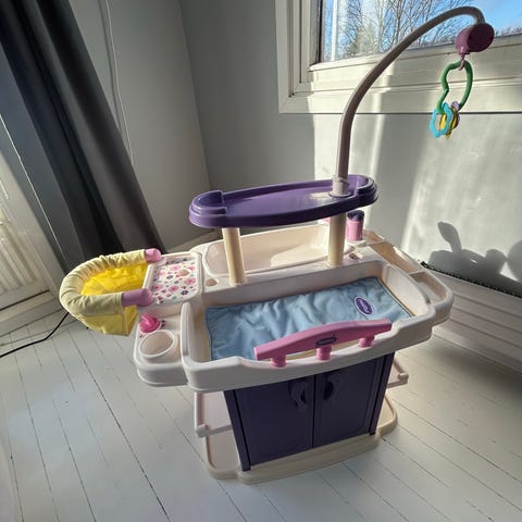 Det følger med stellematte og badekar