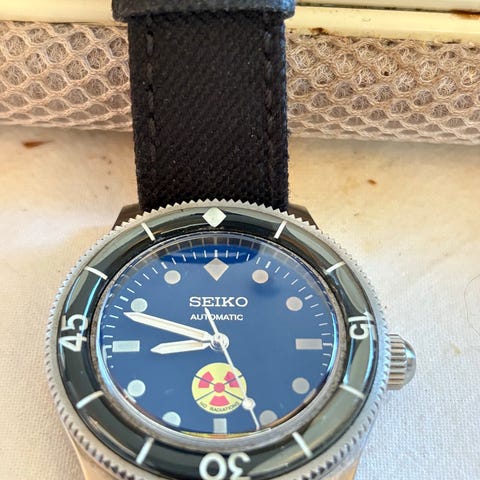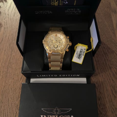 Original eske, klistremerker, merkelapper og komplett armbånd, som nytt.