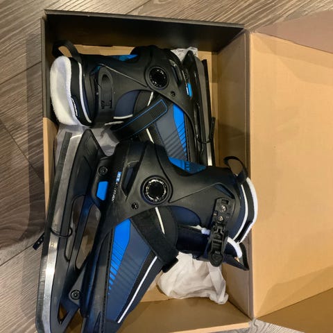 Firefly barneskøyter for ishockey, justerbar størrelse fra 29-33. Skøytene har svart og blå farge og er designet for barn.