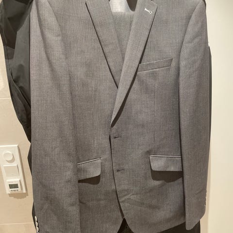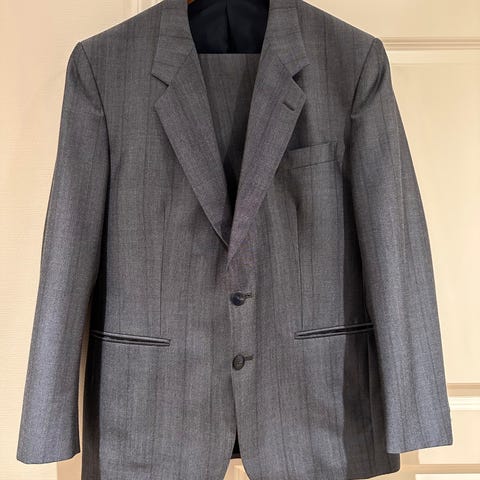Mørkeblå herre dress med bukse og jakke + knapper. Dressen er fra frislid, og er i veldig god stand