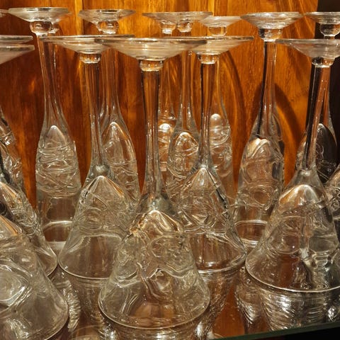 70 talls. 12 grønne fine likør/akevitt glass Luminarc m/stett.