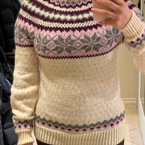 Hjemmestrikket mariusgenser i str S, men er litt oversized. Den er såvidt brukt💕 strikket i smart garn