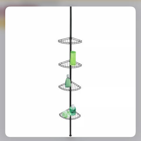 Inneholder 4 trådkurver og 1 teleskopstang. Utvides til maks. 275 cm. Kan brukes i dusjkabinetter, badekar-hjørner eller universelt på baderommet. Tilbyr god plass til shampoo, såpe og annet dusjtilbehør.