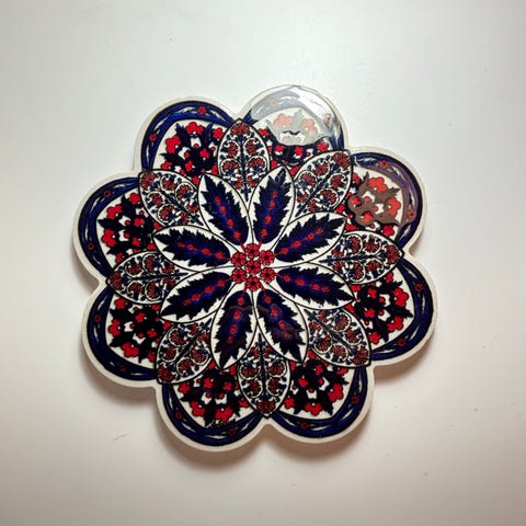 Vintage skål med blader gullkant/rosa ca 4.5 cm høy x 20.5 cm diameter