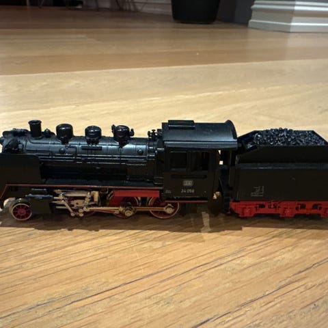 Noen entusiaster der ute som trenger noen flere Märklin skinner og et lite togsett, Märklin Transformator 32 VA, et par hus og en liten haug med ledninger? Ca 15 rette, 40 kurvede skinner og flere penser og «Xer».