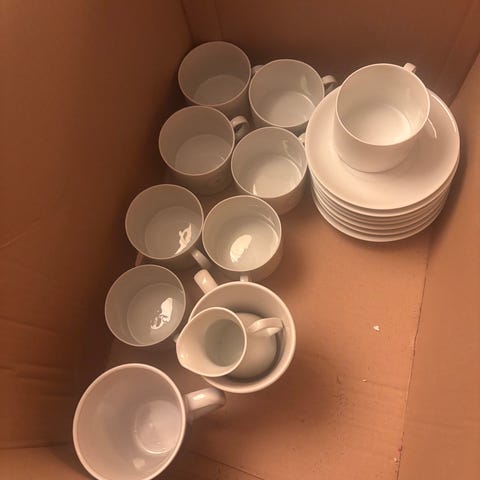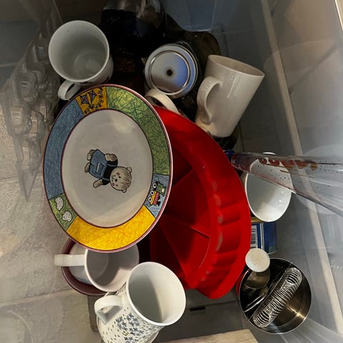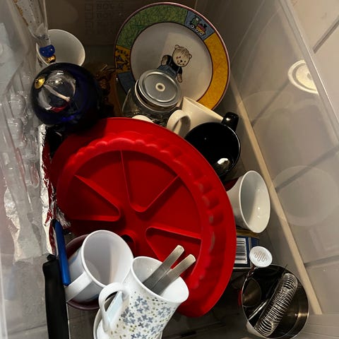 IKEA kjøkkenutstyr og servise med ulike kopper, krus, kanner og bestikkholder i forskjellige farger og materialer. Egnet for daglig bruk i kjøkkenet.