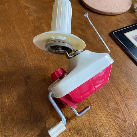 Garnbolle i hvit keramikk, med åpning til ett nøste. Det er plass til 2-3 nøster i bollen avhengig av størrelse og form.