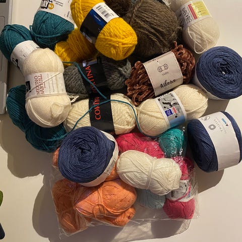 Mix med små rester, en ufo, noen halve og noen hele nøster.