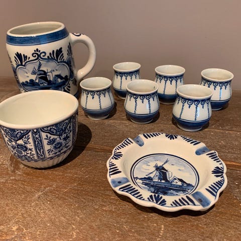 Vintage skål med hanke gull/rosa rød ca 21 cm x 12.5 cm x 3.5 cm høy
