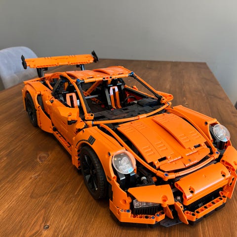 LEGO Icons Porsche 911 Turbo 3.0 bilmodell i hvit farge. Modellen er detaljert og representerer en klassisk sportsbil. Kun bygget opp, deretter stilt ut