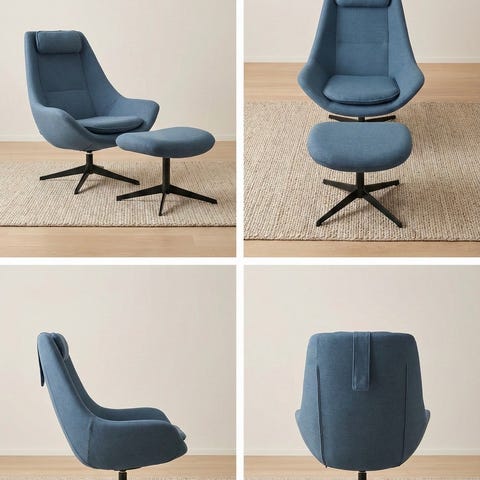 Meget pent brukt lenestol med puff (ikke avbildet) denne er i fire forskjellige farger, blå og grå.