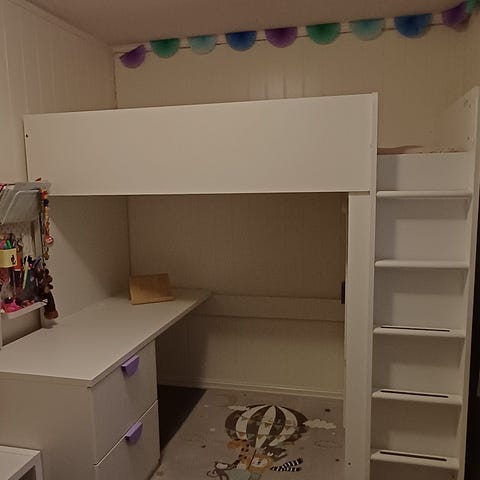 Loftseng med pult og klesskap – smart 3-i-1 løsning