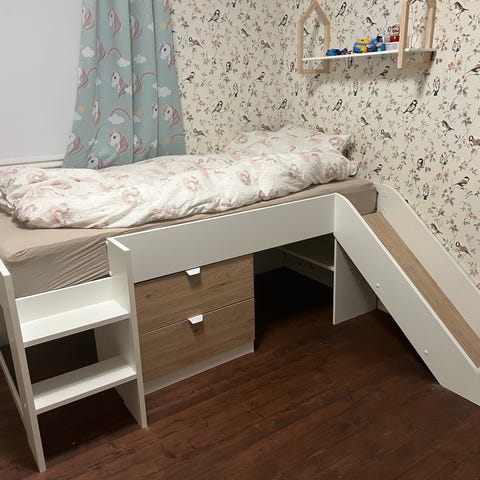 Pent brukt og godt vedlikeholdt. Kvalitetsmøbel som gir mye plass og orden på liten flate. Madrassen følger med