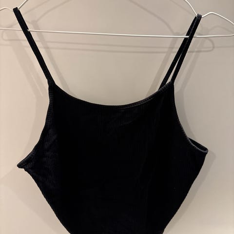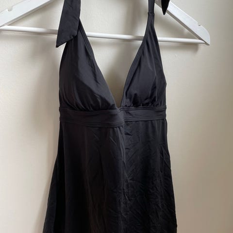 Jeg selger disse nye og ubrukte tankiniene fra Cubus. De er i svart farge. De har en vridd utførelse i stoffet i fronten som gjør at det folder seg litt og gir en pen passform. De har justerbar lengde på stroppene.